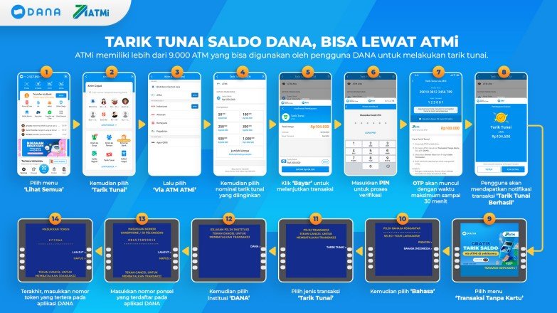 Langkah-langkah tarik tunai saldo DANA melalui ATM ATMi